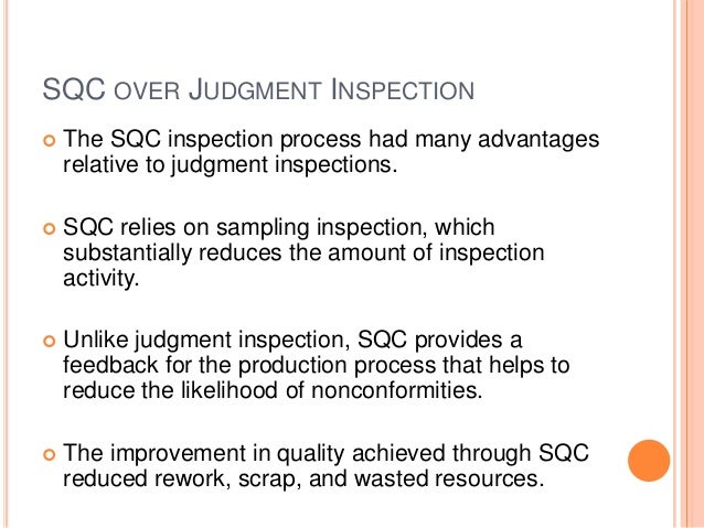 process had many advantagesrelative to judgment inspections. SQC relies