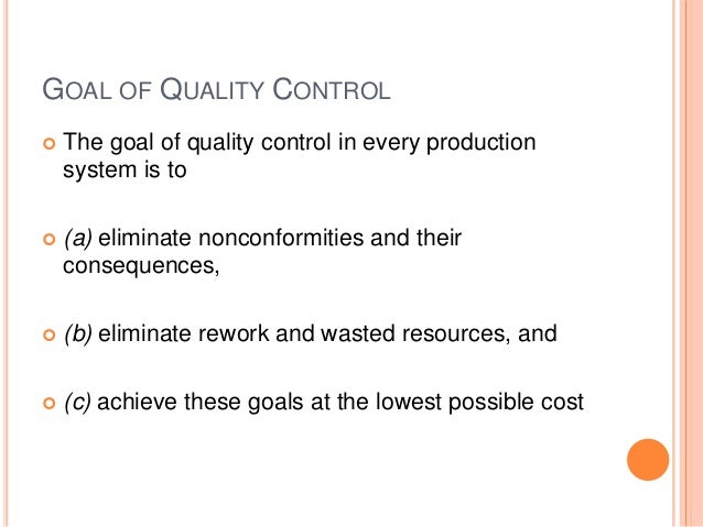 GOAL OF QUALITY CONTROL The goal of quality control