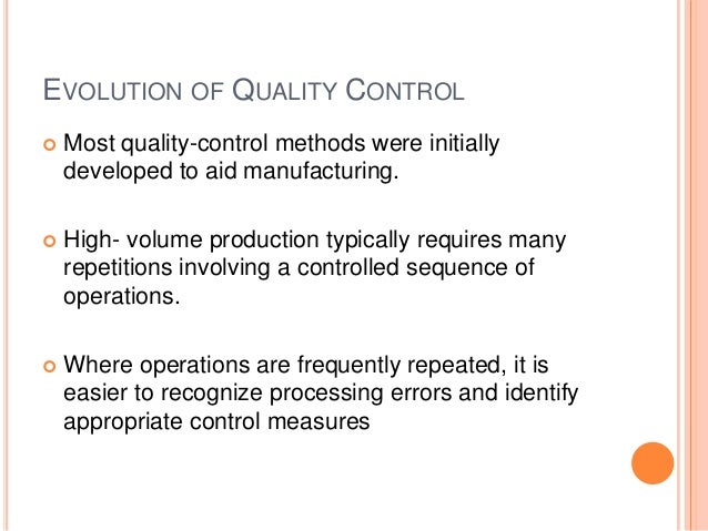EVOLUTION OF QUALITY CONTROL Most quality-control